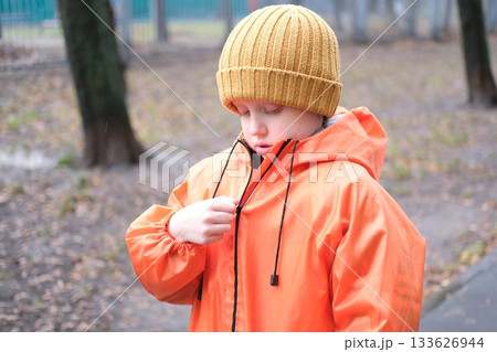 Cute boy cartoon character wearing traditional Santa Claus red costume preparing for Christmas