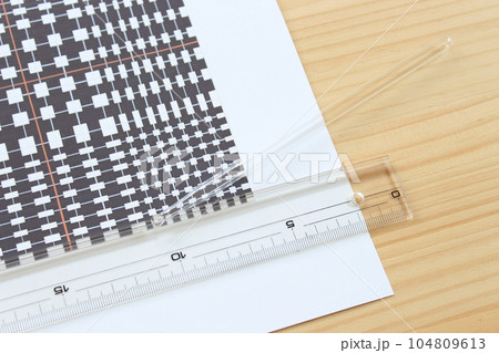 【溝引き・溝引き棒・定規】手描きで直線を描く道具(手描き・アナログ画・チェック柄・シンプル)