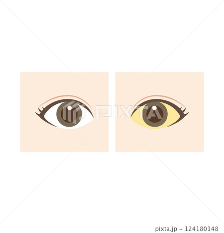 黄疸(おうだん) の眼球と健康な眼球の比較イラスト