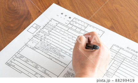 死亡届 死亡診断書 死体検案書 死ぬ 死んだ人の証明(手)