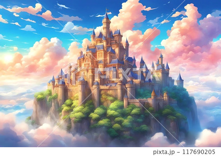 ゲーム背景 天空の雲の中にある滅んだ都市遺跡の残した都