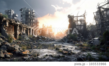 ゲーム背景 滅びた現代社会文明の後の廃墟の世界