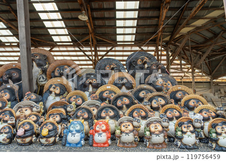 滋賀県甲賀市信楽町の狸の焼き物を撮影