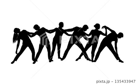 Black Solid Contact Improv Silhouettes Set of Six on White Background
