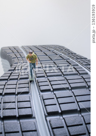 Miniature Kayaker Sliding Swiftly Down Giant Shoe Sole