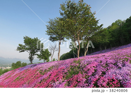 北海道滝上町の風景 満開の芝桜と青空【5月】