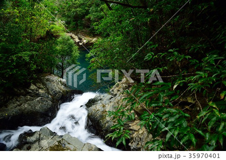 秘境・奥匹見峡の滝風景・渓谷美の谷です
