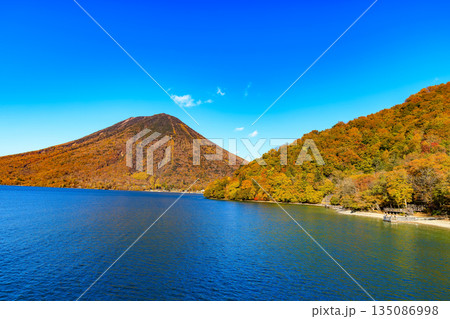 栃木県 日光市 秋の中禅寺湖(遊覧船から見た男体山)