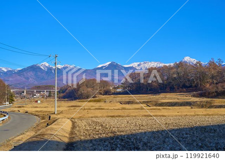冬の長野県茅野市の多留姫大橋付近から八ヶ岳連峰を見る