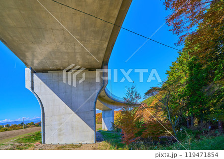 秋の長野県茅野市の多留姫大橋(県道17号)高架下付近