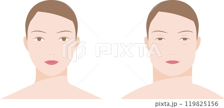 顔のむくみ、腫れがある女性の正面から見た顔のイラスト