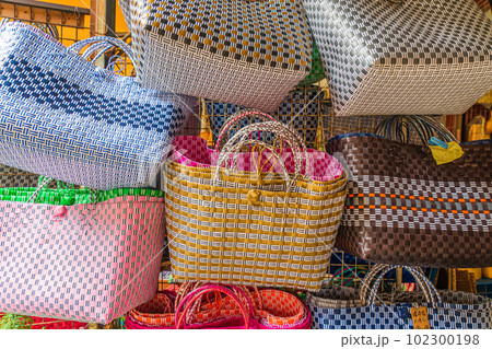 カラフルなカゴバック、迪化街、台北市、台湾