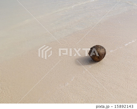 砂浜に漂流したやしの実