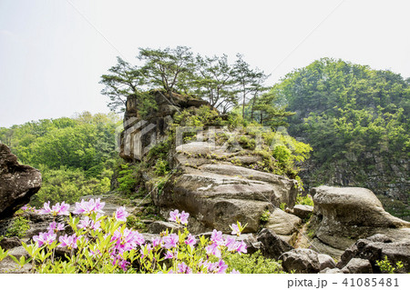 チョウセンヤマツツジ 漢灘江 岩