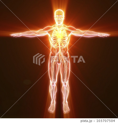 Electrome, the sum total of electrical currents that exist within the human body, conceptual 3D illustration