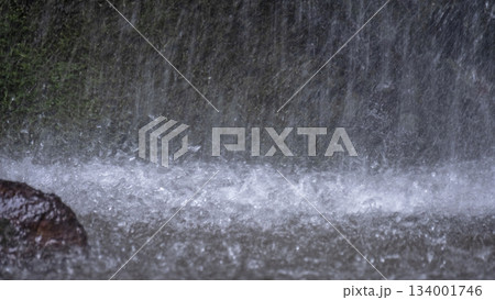 アスファルトに打ち付ける雨粒 ゲリラ豪雨
