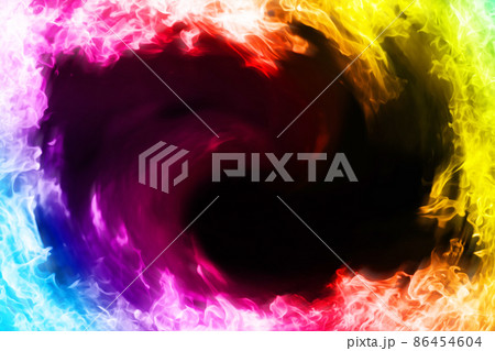 激しく燃えるレインボーカラーの炎のフレームの背景画像
