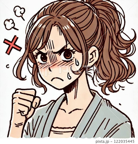 人物イラスト_怒った表情_若い女性_20代30代女性_ママ_女の人