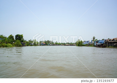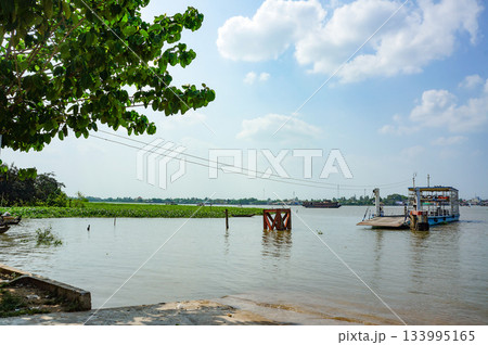 サイゴン市内の濁った川の風景と青空