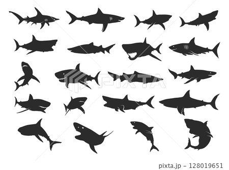 Shark silhouette, Shark silhouettes, Shark SVG, Shark icon set, Shark clipart, Shark vector illustration