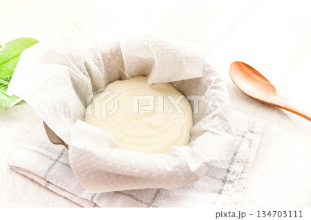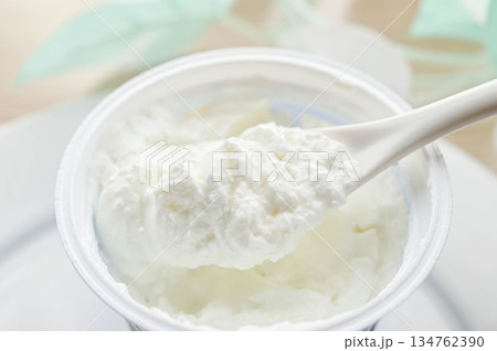濃厚でなめらかなプレーンヨーグルトのテクスチャ クローズアップ