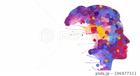 Illustration of human head silhouette with abstract watercolor splashes