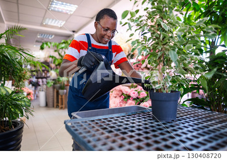 Person with glasses wearing hat immersed in reading notes in lush flower garden holding tablet. Pink flowers prominently frame lush greenery creating tranquil environment