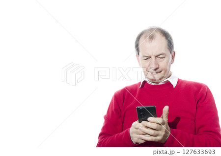 Miniature Figurine Pushing Against Invisible Force isolated on white background with clipping path