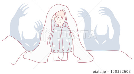 A childs intense fear of shadows lurking under a cozy blanket, expressing deep anxiety