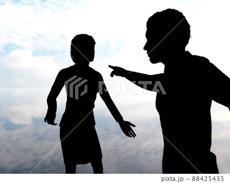 犯人はお前だ 男性を指差す女性 黒いシルエット横