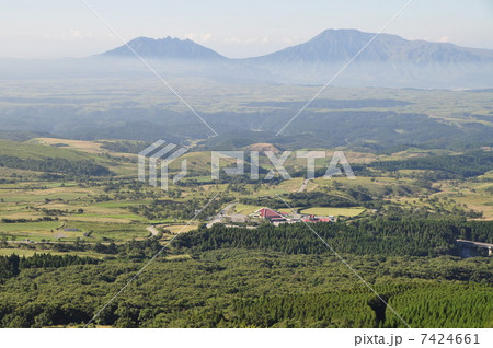 阿蘇五岳 阿蘇涅槃像 久住高原展望台から望む阿蘇五岳 大分県竹田市久住町久住