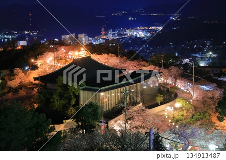 【広島県】千光寺公園の夜桜と尾道の夜景