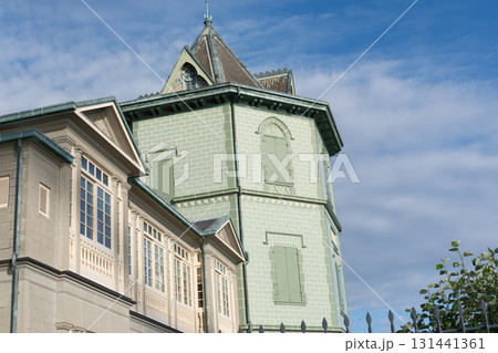 夏の神戸舞子公園にある改修中の旧武藤山治邸