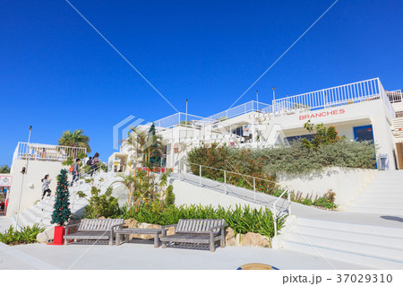 ウミカジテラス オシャレ 沖縄 南国 観光地 旅行 デートスポット 白い建物 青空 快晴 トロピカル