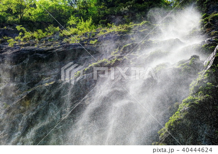 灌頂ヶ滝 風に流れながら落ちる水しぶき 徳島県勝浦郡上勝町