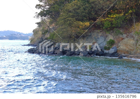 兵庫県淡路島 灘黒岩水仙郷から見た南淡路水仙ラインと沼島