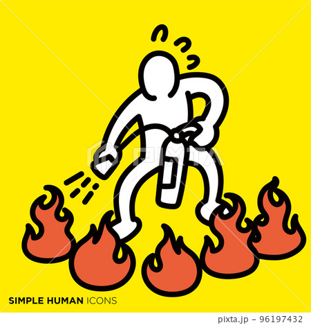 シンプルな人間のアイコンシリーズ 「火を消す人、SNSでのblow upに対処する人」