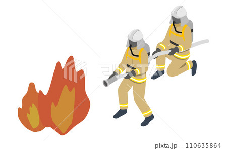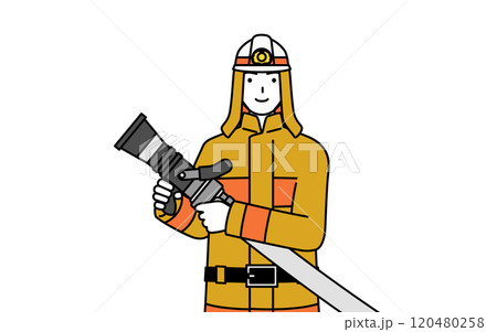 ガンタイプノズルの消火ホースを持つ防火服姿の消防士