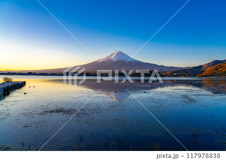 【富士山素材】冬の朝の河口湖から見た富士山【山梨県】