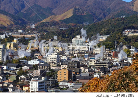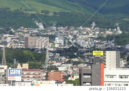 湯けむりが立ち並ぶ別府の市街地(大分県 別府市)