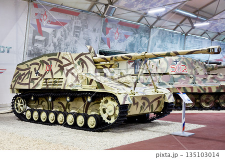 Belarus, Minsk - April 19, 2018: Soviet military equipment at the memorial complex Kurgan Slavy, Medium tank T-34