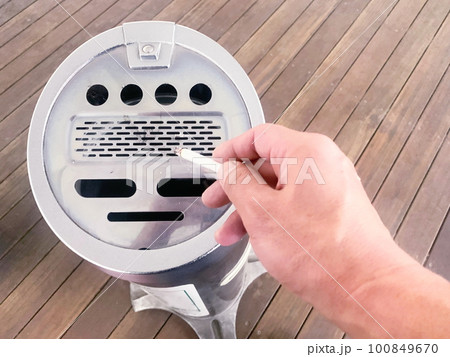 喫煙所とタバコを持つ手(喫煙エリア)