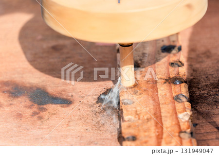 まいぎり式火起こし体験 白い煙