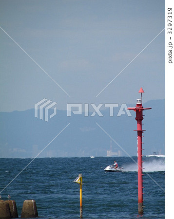 兵庫県神戸市、垂水区の海岸からの海の風景。平磯灯標。