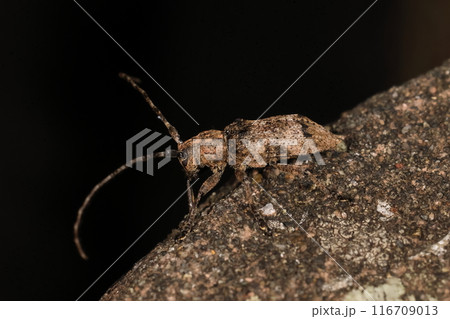 生き物 昆虫 シモフリナガヒゲカミキリ、十月初めの石垣島で。朝、公園の東屋にいました
