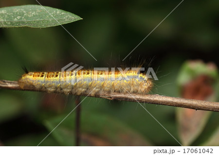 生き物 タケカレハ、幼虫は色彩の変異の大きい大型の美しい毛虫。他のカレハガ同様毒針を持っています