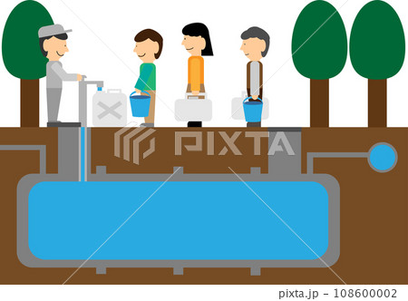 耐震性貯水槽から給水を受ける人たちのイメージ素材