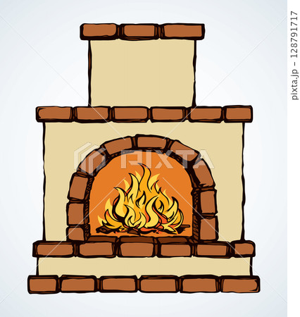 Isolated fireplace drawing. Interior winter decoration. Simple flame art. Home furniture in cartoon style