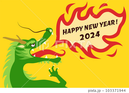 2024年辰年 龍が火を吹いているカラフルなイラストの年賀状