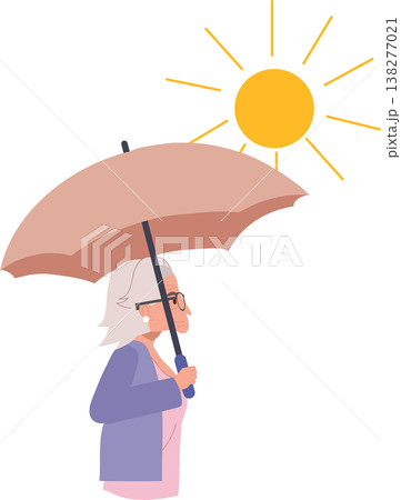 senior woman using umbrella for sun safety in hot weather outdoor lifestyle illustration